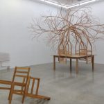 For the Prada Women’s Fall/Winter 2017 fashion show, AMO questions and looks at the role that women have in shaping modern society, their political participation and social achievements. In the current moment – one where we are confronted with several cultural uncertainties – it is hard to think that any form of creative production will be exiled from taking a position in favor of the liberal values we share. The scenography identifies the intangible centrality of the contemporary female role both at the domestic and public scale. The set is organized concentrically: while the center maintains an intimate scale, the perimeter is conceived as an abstract exterior. A continuous wooden partition divides the space into a series of consecutive sceneries. This ideal boiserie traces sinuously along the perimeter of the rooms giving an intimate / controlled scale to the set. The sense of domesticity is amplified by the presence of beds, benches and ordinary lamps spread throughout the room defining the rhythm for the overall composition. Beyond the boiserie, the existing wall is invaded by a series of posters that simulate an urban front. – from AMO