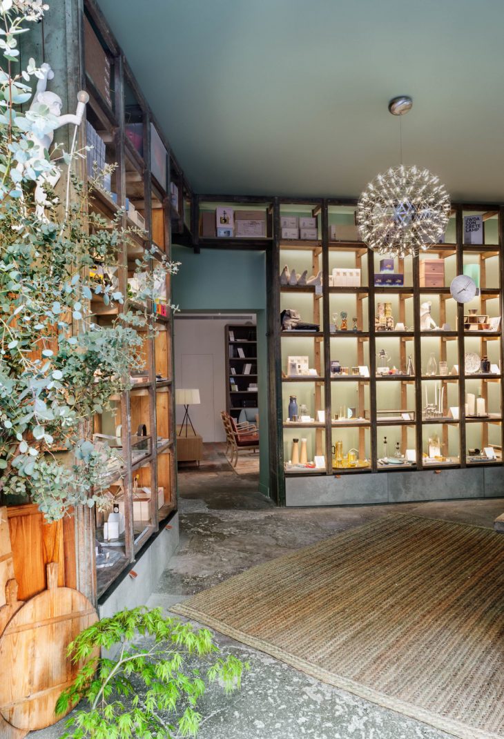 The flagship includes a new thoughtfully curated and displayed design gift section, for which the architects repurposed the hardware store´s original shelving, with the clever addition of a sophisticated and discrete lighting system. Cutting edge brands share space with items by local artisans and designers, complementing BATAVIA´s eclectic mix of contemporary and vintage furniture, lighting, original art, antiques, and vintage rugs.