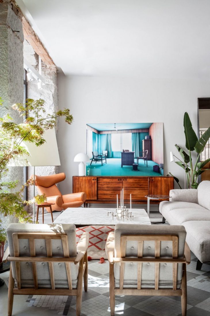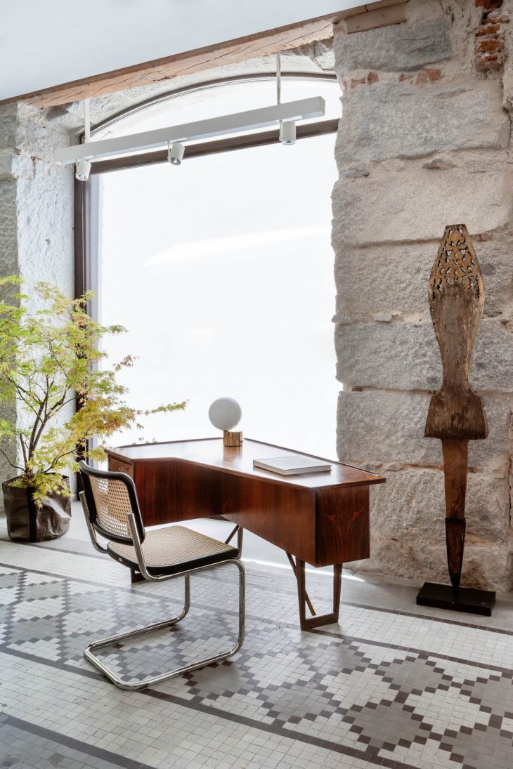 From the architects: BATAVIA, a Madrid destination furniture showroom for contemporary and modern design, celebrates its 20th year in business with the launch of its new flagship space in the Palacio de Santa Barbara. In a 400sqm space, designed by the affiliated architecture studio ÁBATON, the former stables of the mid 19th century mansion have been transformed into a serene modern space. In homage to its last tenant, a hardware store which had occupied the space since 1906, ÁBATON decided to keep several elements of the existing space. Exuding warmth and patina, the space created includes original mosaic floors, exposed solid stone support columns, in addition to new large steel cased apertures which link the various spaces of the new showroom.