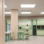 Among the highlights, the Kanan Sofa, upholstered in a custom Italian twill, exemplifies the balance of performance and elegance, accompanied by the Kanan Chair in the same finish. The Rohe Marble Tables, offered in dining, coffee, and side variations, pair streamlined stainless-steel bases with richly finished marble tops in a nod to International Style precision. Kravitz Design also revisits its Rake Dining Chair, reinterpreting it as a lounge chair and ottoman layered with suede cushions over sculptural steel.