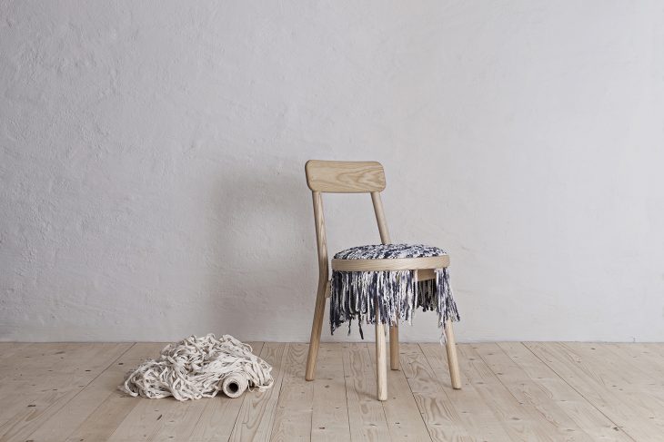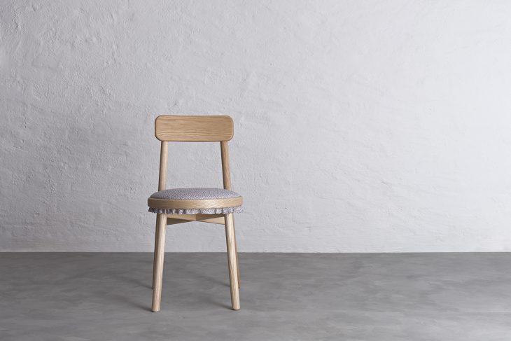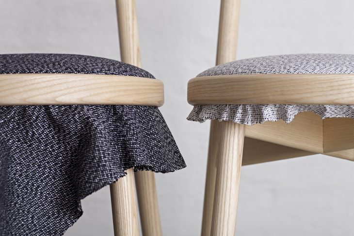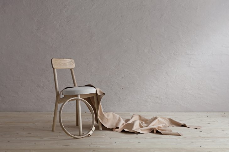 Stoft Studio designed the Canvas chair to highlight the upholstery on the seat, which works like an embroidery frame to showcase varied materials like pieces of art. Canvas is made of bent Ash wood with unique textile interpretations on the chair seat. The raw edges and visible inside of the upholstery highlights all the beautiful and natural characteristics and craft that traditionally has had a low status and been down-prioritized.