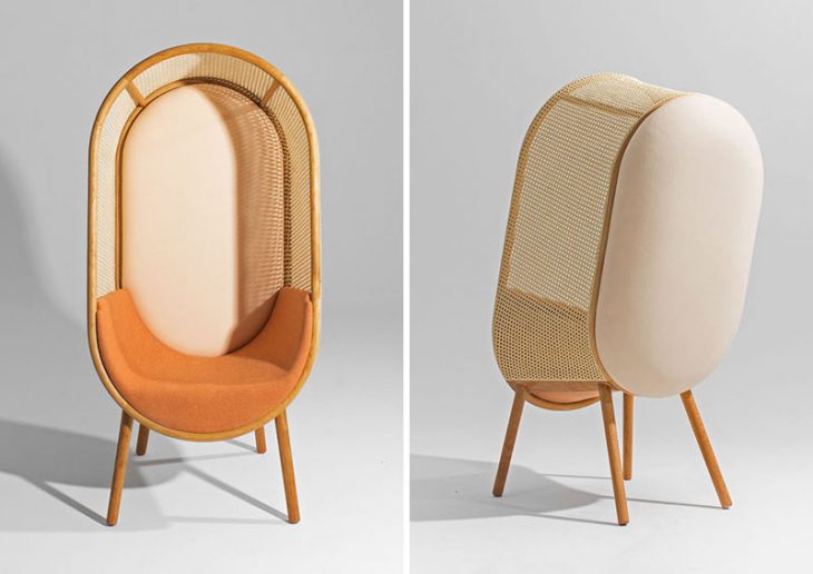 Designed by Danish architect Kevin Hviid and designer Martin Kechayas, Cocoon is a Cozy And Modern Lounge Chair for private and public space inspired by the designs of the 60s. The lounge chair is the result of a fusion between the beauty in rattan fabric and a curvy, unified wood silhouette. Take a look at the complete story after the jump.