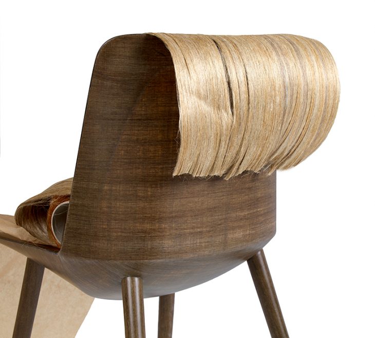 From the designer: The unique structure of the “ JIN ” chair was realized by using flax fiber, a biological material that if successfully industrialized, can make furniture both extremely light weight and high performing. The body of Jin is defined by shaping thin layers of flax fibers on top of each other, forming a strong shell around a core of air, making the surface the actual structure of the chair.
