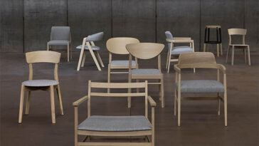 Designed to pair with the Metallico table, GamFratesi’s Romby armchairs enhance comfort without sacrificing refinement. Featuring a central base in black-stained ash and a generously cushioned seat, the Romby armchair introduces a tactile softness to the structured lines of the table. The seat’s delavé fabric cover adds a subtle texture, reinforcing Porro’s dedication to material research. The Romby armchair measures 66 cm in length, 81.6 cm in height, and 58 cm in depth. It is available with a natural ash or black-stained ash base. The seat options include fabric, leather, eco-leather, and Nabuk leather, allowing for a range of finishes to suit different interiors.