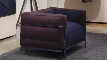 Accompanying the table are Christophe Pillet’s Sixte chairs, which combine a tubular painted metal frame with plush leather cushions. The chair’s refined Parisian essence introduces a sense of ease and sophistication to the Porro collection. Available with removable fabric, leather, eco-leather, or Nabuk leather covers, the Sixte chair offers customization to suit a range of interiors. It measures 50.5 cm in length, 78 cm in height, and 57.5 cm in depth. The structure is available in a glossy iron-painted or glossy silver-painted finish. The seat and backrest can be covered in fabric, leather, eco-leather, or Nabuk leather.