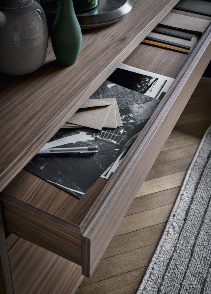 The collection includes two side boards and one cup board: both models are finished on all sides, opening the way to many placements that see Privè in various settings in the home. Impeccable as a centerpiece in a spacious living area or against the wall in a dining area or entryway, Pillet’s project becomes an object that houses, reveals and hides; a special place which is intimate and public at the same time.