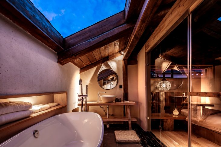 KARESANSUI is located at No. 46 Cuo Lang, North Gate Street of Dukezong Ancient Town, Shangri-La, Yunnan. It is geographically blessed — only three minutes’ walk from Sifang Street. Buildings of KARESANSUI are built on the slopes; it took nearly two years to complete the construction. During the construction period, Mr. Xu stayed on project site with his assistants for nearly one year to follow up on and instruct the construction. This contributes to the perfect implementation of the design!
