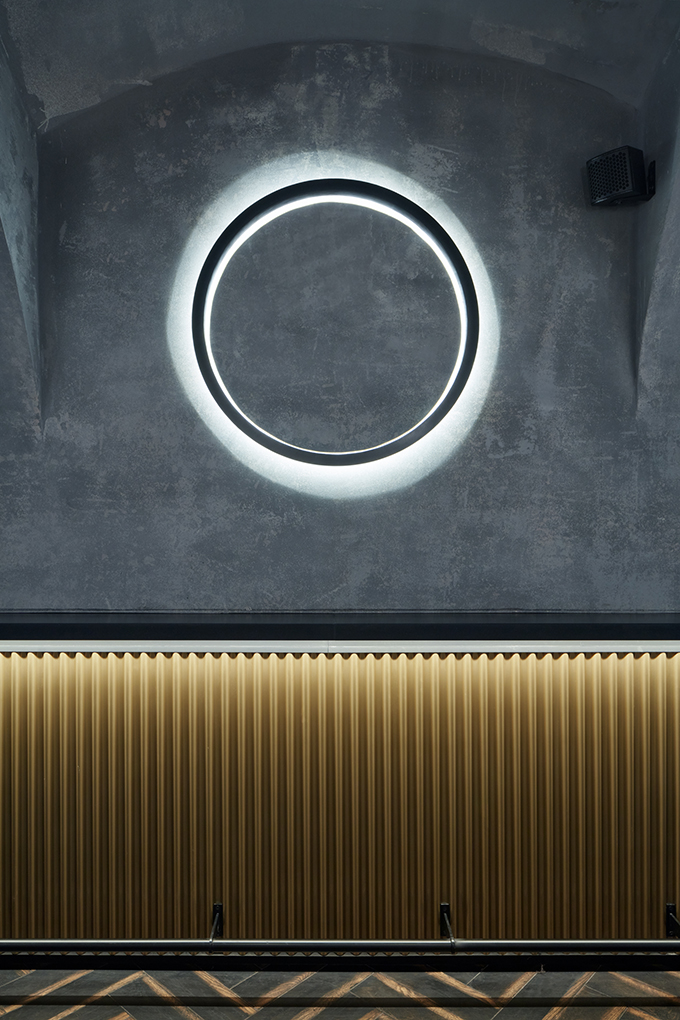 Different zones were created in order to overlap the original building layout with the needs of the club operation. Cosy seating areas with comfortable lounge furniture and mild light intensity are placed under arch ceiling alongside the central hall, while the dance floor is placed opposite to it. One has an overview of the happenings around the central bar from the courtyard gallery, can move into one of the lounges or enjoy the atmosphere in the alchemist bar located on the second floor.