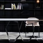 The concept places the service counter at a central location, because this is where the processes of the cafe’s operations come together. This core function makes it a formative element that integrates all materials. Inspired by the traditional coffee house culture, ceramic tiles in the chessboard pattern highlight the more than 10-metre-long lshaped counter. The latter is clad in whitened oak slats, creating a natural colour spectrum with a lively effect. The shape and material of the carcass are finished off with a massive wooden top and an inserted glass display case. The suspended black steel shelves in the background have the charm of untreated materials and provide an effective contrast to the soft colours of the organically shaped ceramic tiles.