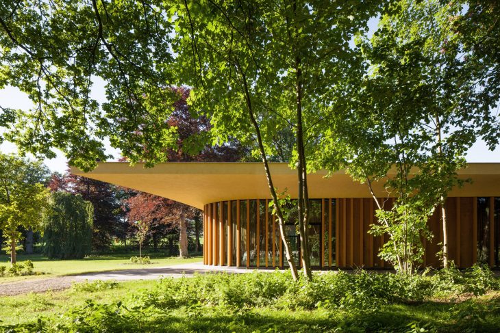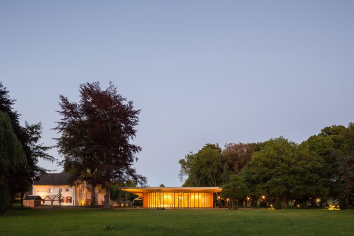 Château St. Gerlach is an estate near Maastricht, situated in the middle of the hilly Limburg countryside: a unique complex with a luxury hotel, restaurant and spa. Mecanoo architecten designed an elegant pavilion which balances the historic buildings on the site. The pavilion completes the ensemble of the Château (1661), the St. Gerlachus Church (1727), the Farmstead (1759) and the Manor Farm (1668). The estate is now clearly visible from the public road, and has gained new significance for the village of Houthem.