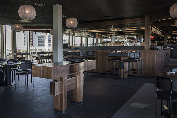 The centrepiece of the restaurant and the focal point for all the action taking place in the heart of Sticks’n’Sushi is the kitchen structure and pavilion. The custom-built wooden structure provides a skeletal frame for a highly functional, showpiece kitchen designed to optimise service functions as well as enhance the overall dining experience.