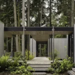 The structure unfolds over three levels, with spatial organization defined not by fixed partitions, but by a mobile platform that moves vertically through the house. This element serves as both elevator and spatial modulator, allowing programs to reconfigure depending on need, use, or time of day. On the second floor, glazed operable walls separate an interior pool from an open plateau of lawn, allowing for seasonal and situational shifts between indoor and outdoor uses.