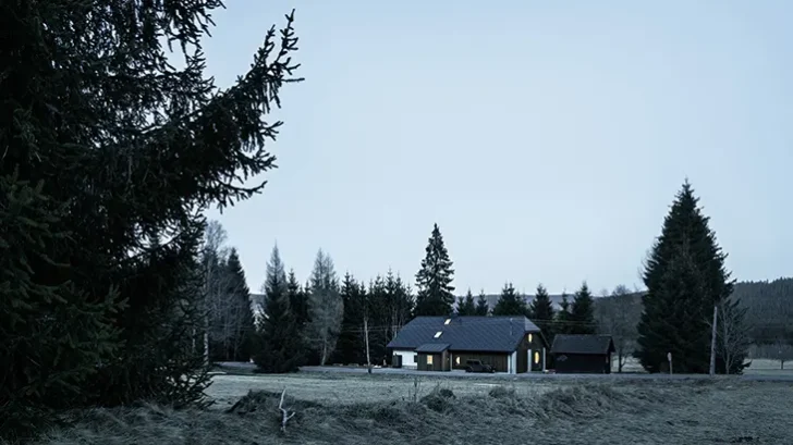 Original interior elements continue to define the atmosphere of the house. Studio Plyš restored sections of wooden flooring and retained the tiled stove, which remains operational. A heat pump system now provides daily heating, supported by automated controls that manage shutters and electrical systems. Custom oak furniture designed specifically for the project reinforces continuity between old and new. Borová Lada Cottage demonstrates how careful structural repair and precise contemporary additions can extend the life of rural architecture while preserving its cultural and spatial identity.