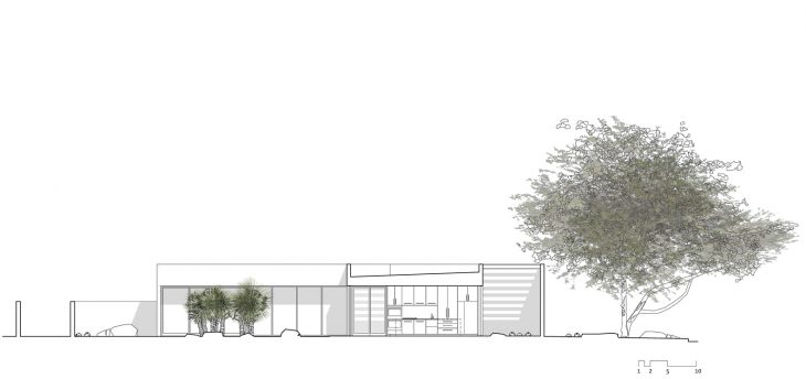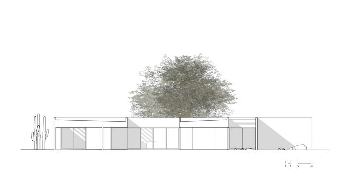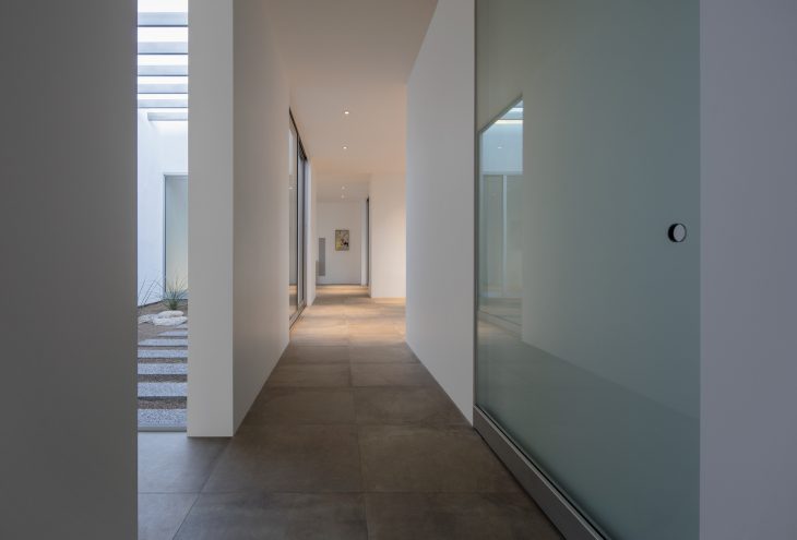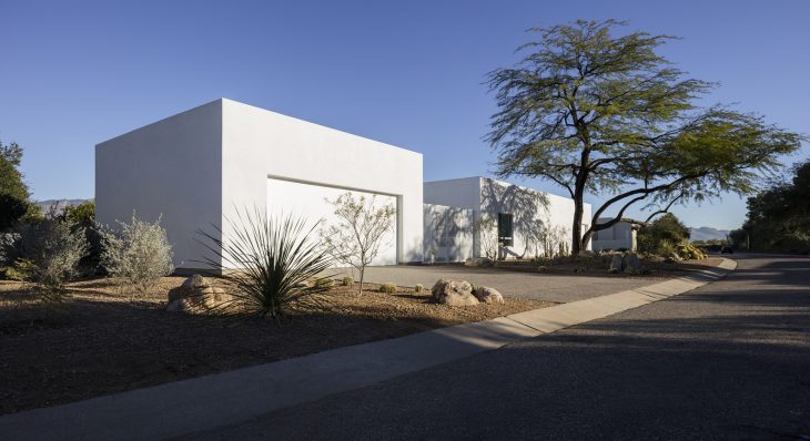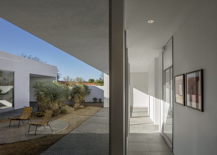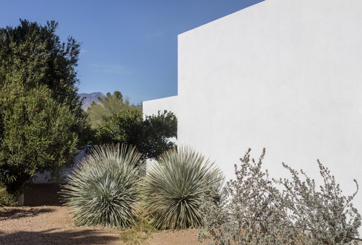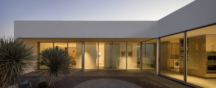 From the architects: Situated in a nondescript subdivision in Tucson, Arizona, the Courtyards House is a desert minimalist reinvention of residential suburban inhabitation. Conceived as a series of interlocking interior and exterior volumes, the living spaces of the home contain, or are contained by six individual courtyards. Spatial boundaries are defined, yet fluid, with light, views and access flowing from one part of the home to the next. Each courtyard is distinctly xeriscaped with southern Arizona specimens, providing moments of focus and release – foreground and middle ground lend themselves to background and the distant mountain views beyond.