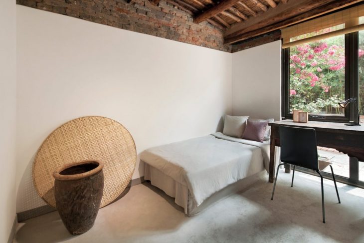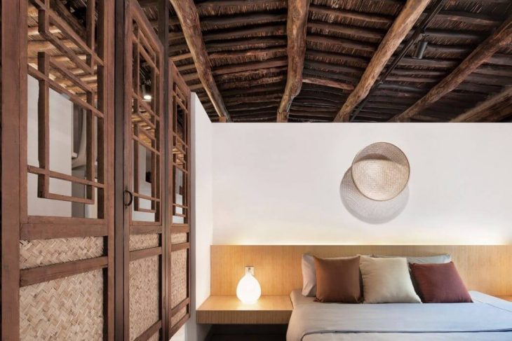In terms of functional layout, we have made adjustments to re-organize the floor plan based on detailed communications with the residents, understanding their daily routines and habits. After we removed the suspended ceiling, more space had been released, along with the original wood structure and straw-covered ceiling texture are finally revealed, telling a story of time. During site survey process, we discovered a narrow pathway about 80cm wide between the west side of the building and neighboring wall. So we designed a view window at the end of the corridor toward the west side. Outside the window, swinging bamboo shadow helps to connect the interior space with the natural environment.