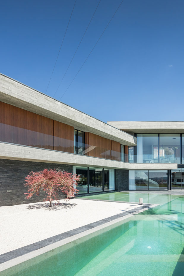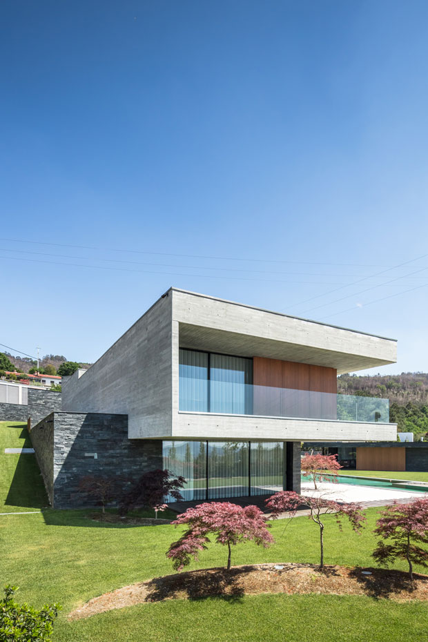 Discover the Fraião house, located on a densely populated hillside in Braga, designed by TRAMA Arquitetos. Set up on two floors in a “V” shape, the house was conceived to take advantage of the privileged views over the city.