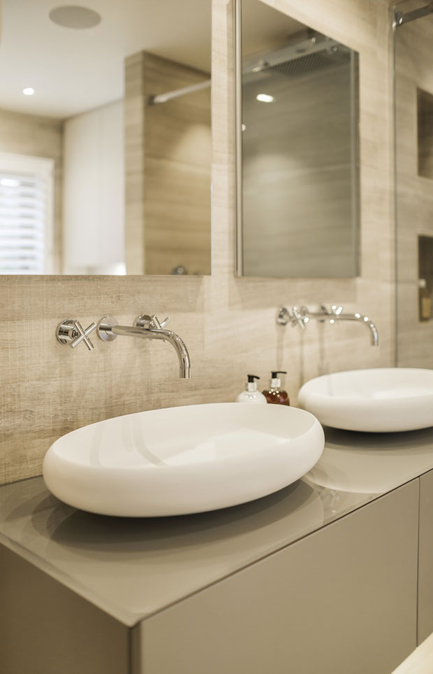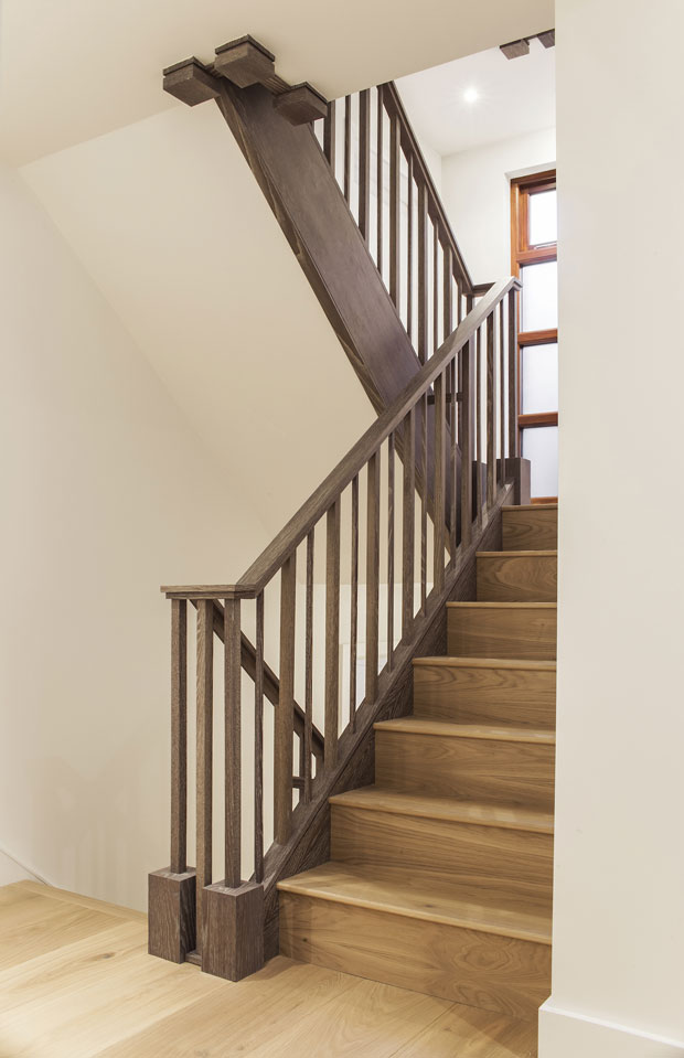 Although the house was c. 3500 sq ft, with generous room sizes, the house was very vertical comprising of 7 floors, with each room being effectively on a half landing; with a central core staircase connecting them. Overall the rooms seemed disconnected from each other without flow or relationship between them. The staircase and hallways were poorly lit and had a gloomy feel. The design revolved around redefining the General Arrangements. We brought light into the staircase, by adding extra skylights on the top floor and also adding a floor-to-ceiling window on the third floor half landing. We decided that it would have been logistically complex to replace the existing staircase, so we stripped back the existing structure, re-clad it in a greyed oak and re-designed spindles, banister rail and newel posts, to be in keeping with the new warm contemporary aesthetic.
