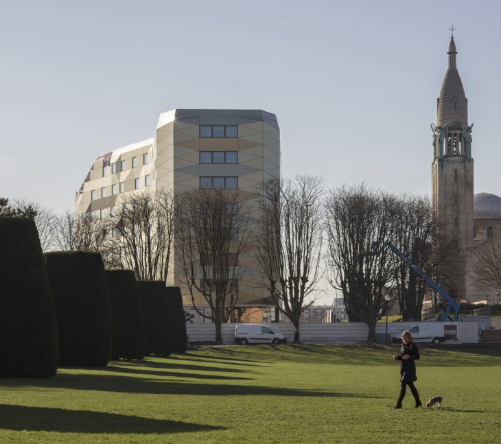 From the architects: First home built at the Cité Internationale Universitaire de Paris for 48 years, it is also the first concrete realization of the major campus development project. While continuing its humanist project, the Cité internationale is increasing its capacity by creating 10 new homes (1,800 new homes) and is adapting to the expectations of international students in the 21st century by modernizing its infrastructures and services by 2025 .