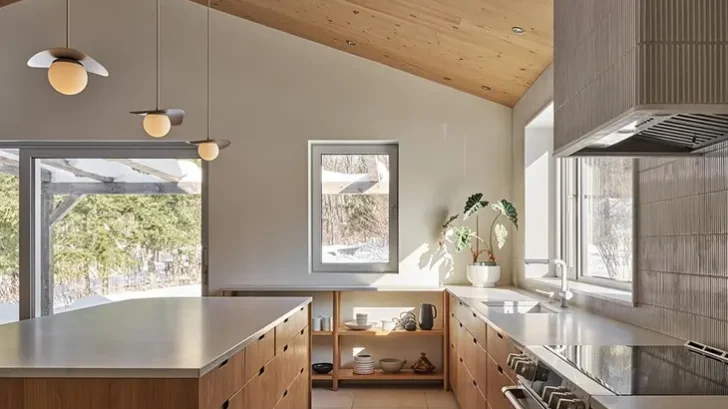 In the forested landscape of Sutton, Quebec, Maison de la Coulée douce reconsiders how multiple generations can inhabit a shared domestic environment without sacrificing privacy or calm. Designed by La Nony FAMILI in collaboration with Le Local Design, the 3,990-square-foot residence occupies a sloping site overlooking a small pond, where orientation and restraint guide every architectural decision.