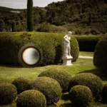 The material palette is just as considered. Locally produced terracotta shingles, traditionally used for roofing, are repurposed here as both roof and wall cladding, creating a tactile surface that echoes the warm tones of the surrounding foliage. This design gesture reinforces the home’s deep integration with its garden environment while delivering a distinct architectural identity.