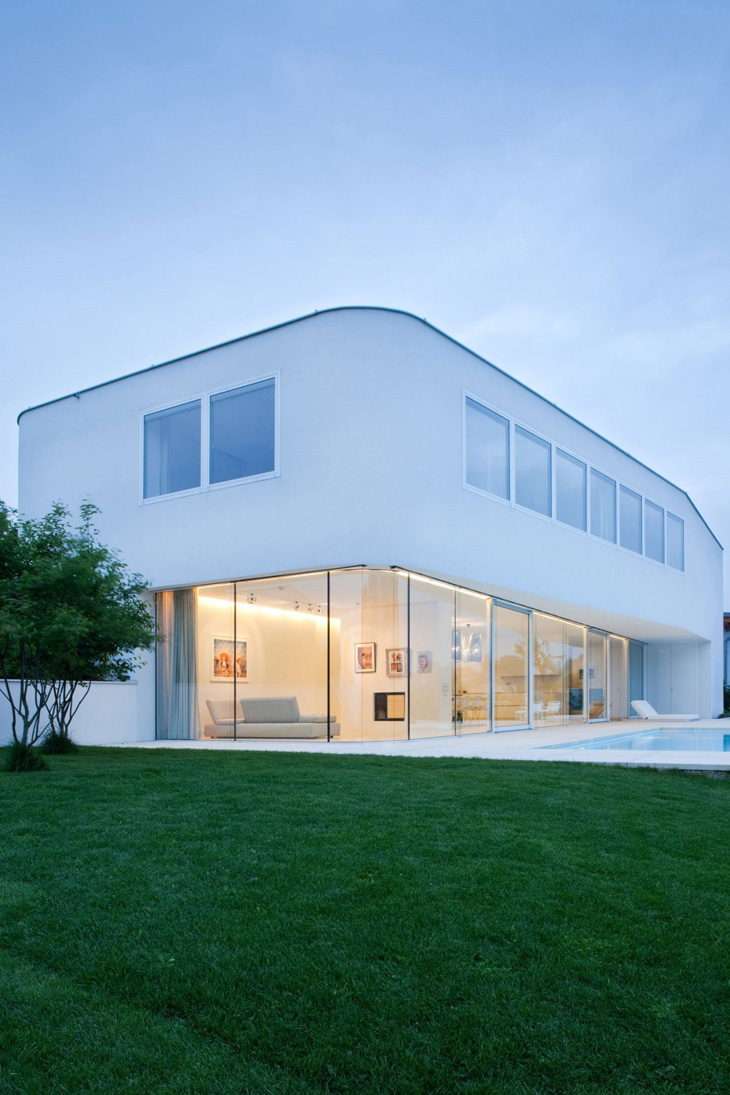 Coloured in white L House is the project shaped for a couple with two children and their two cats. House design comes from Schneider & Lengauer architects. More images and architects’ description after the break. More