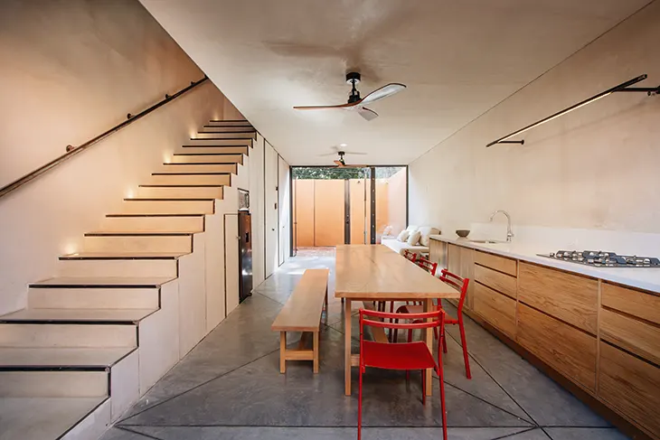 The intervention begins with a simple but firm premise: to work inward. Rather than opening the house toward the street, the design focuses on internal orientation, allowing the dwelling to regulate its own climate and sense of calm. This inward logic results in a residence that feels protected and generous at once, reinforcing the idea that quality of life emerges from spatial intelligence rather than scale.