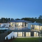 The new Tower-house I contemplates exactly this; a mass among existing preserved retaining walls and a few new concrete ones. There are no seams at the white, stucco facades, only the dark frames of the apertures. No elements project from the main volume, except a steel frame in front of the main view, accommodating temporary screens.