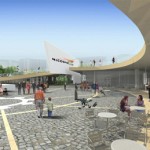 Materially, the houses remain abstract, to offer a reading of the forms as packages of discrete volumes with orientational differences made possible by the large apertures. There is a rubber roofing system that is used for the tops of the houses and dark, thick stucco that coats the sides and underbellies of the houses.