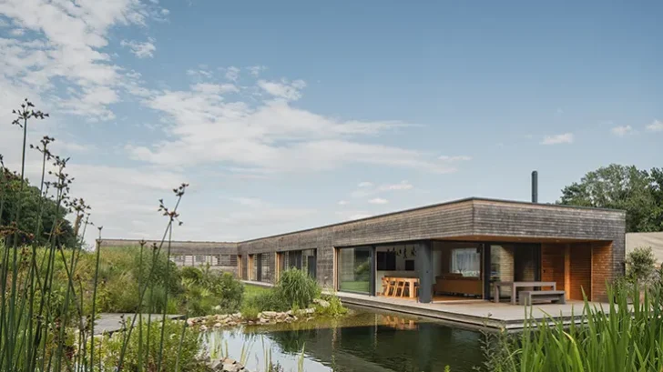 Located on the edge of a small village near Prague, Villa Above the Water by 3AE was conceived as a family home that anticipates change while protecting intimacy. At the time of its design, the site looked out onto meadows and open views, but the architect chose to orient the house toward the garden and the forest. By turning away from the parts of the landscape most likely to become developed, the design ensured a sense of permanence and privacy for its residents. The house creates its own enclave, a retreat that belongs to its setting without depending on it.
