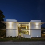 Designed in collaboration by architect Paulo Flores and ggarchitects, the home is situated city of Queretaro, Mexico. The design’s concept is formulated in a “vortex” of circulation that articulates inner programs. Unlike traditional organization principles defined by walls, doors and corridors, the circulation in Vortex remains organic and visually continuous connecting interior and exterior spaces through curved walls and organic openings that are linked via a playful stair that dramatically crosses over the eroded inner spaces. Take a look at the complete story below.