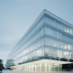 Emmanuelle Moureaux Architecture + Design designed this impressive bank. The site is located on the corner of major intersection, where there is a frequent movement of cars, bicycles and people. Taking this unique location as a characteristic, the facade is designed to be rhythmical that changes expression as people see from different angles. Colors appear in and out from the rhythmical repetition of cubes, dancing like musical notes playing rainbow melody. The facade is composed of cubes of four different depths. Small elevated gardens are built inside 12 cubes, where the seasonal changes in nature are expressed by seasonal flowers like marigold, lavender, and growing trees such as olive tree. Gardens can be seen from the open space on the first floor, and from the financing section and cafeteria on the second floor. Sunlight is filtered through the foliage of elevated gardens on the South facing facade, providing a harmonious and warm atmosphere inside the bank. The colors, flowers and trees appear in and out from the repetition of floating cubes, playing rainbow melody. The melody spreads happiness and comfort to visitors and to the people in the local community.