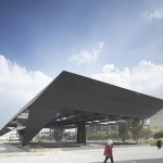 To delineate the function of each panel, three colors were chosen: a bright orange, a glowing yellow (for the concealed bar) and a deep blue. These colors add an active layer to the space while tracing their connection back to Piet Mondrian’s inspirational composition paintings, from the 1920′s and 30′s.