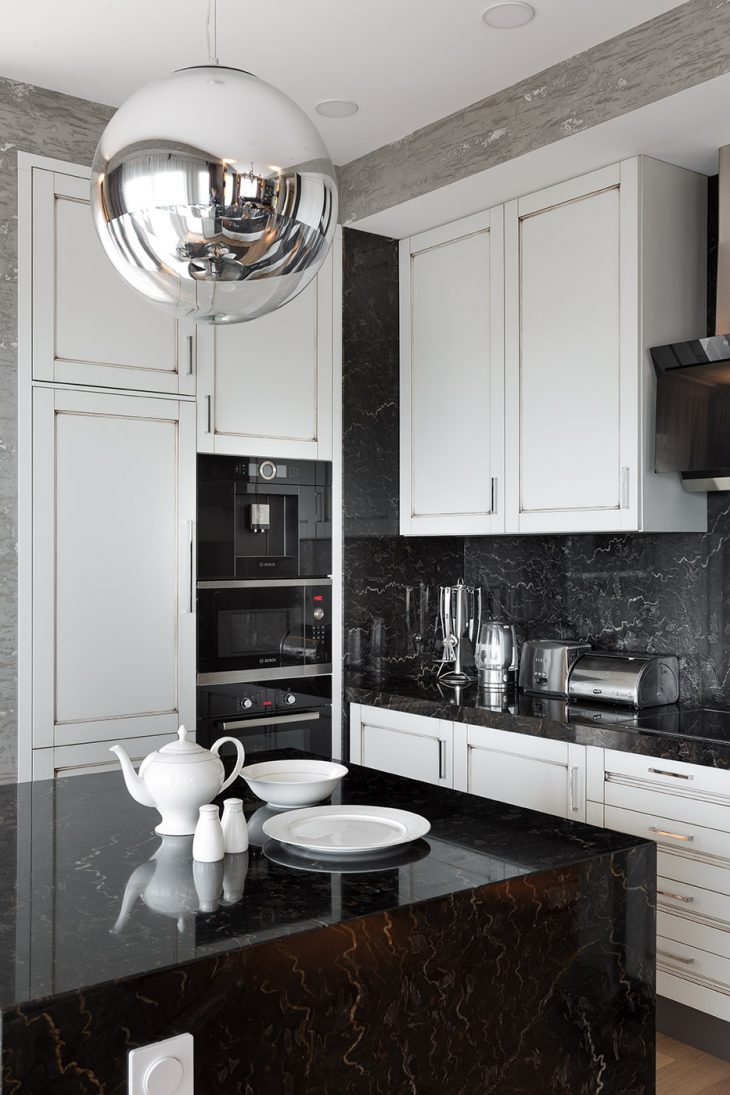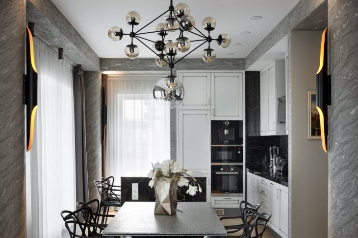 It is large enough, it has three full rooms, two bathrooms, a dressing room, a laundry and a huge living area, so that all family members and guests can get together and have a great time. This apartment is made quite in a quiet style but with very bright accents, these are my authorial techniques that I express through symbolism. Inspiration is taken entirely from different areas, not related to architecture or interior. It can be wires on the street, a video game, a rusty car parked near an expensive boutique. On my projects there is always an ambiguous reaction, I’m a devotee of a way of life in hotels and always a little bit I project their structure on their own residential projects. This allows you to always do something interesting and practical.