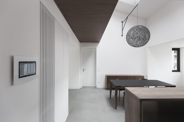 Discover this modern penthouse apartment in Palermo, Italy, designed by Studio Didea. The luminous and spacious home of 180 sqm spreads on two levels and has a double space separated by a sliding glazed door – on the east side the kitchen and dining room, on the west side the living,