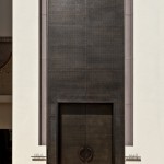 The showcase, in painted iron, is designed as a small autonomous architectural element. An inset, in folded sheet metal, highlights the depth, obtained in art, in order to carve out an adequate exhibition space. The depth allowed to work on different levels: on the rearmost is the input frame, the slender proportions and the upper cladding panel. The display case, instead, is suspended, an independent volume that juts out from the rearmost panel. Inside stands the suspended body of the sign, which clearly takes on the theme of traditional optotype. Everything is characterized by a calibration of solids and voids that gives full space to the transparent surface, allowing introspection from the street and ensuring sufficient natural light.