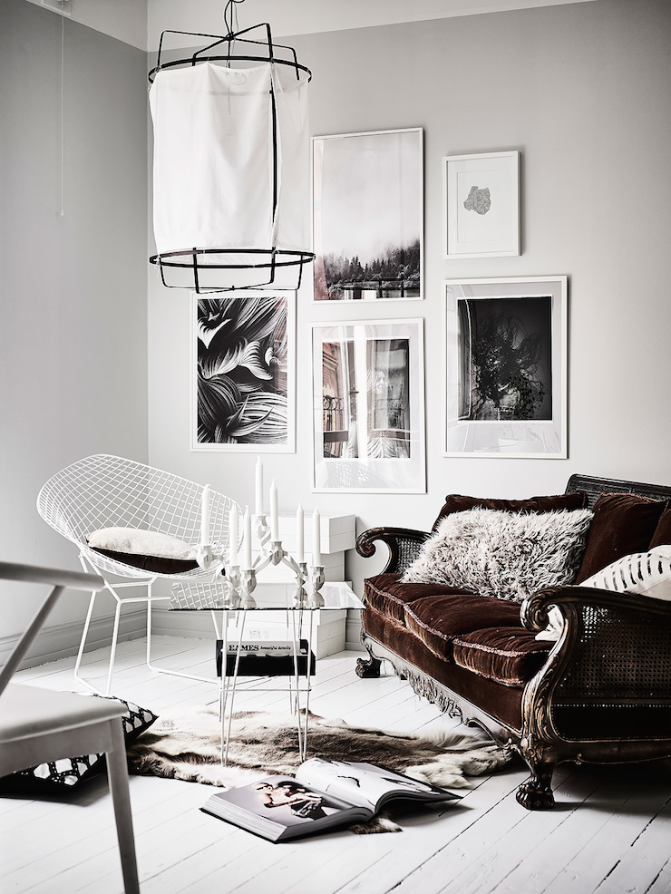 Take a tour of this stylish monochromatic apartment from Sweden. White painted floorboards & monochromatic wallsstyled with modern pieces. Photography by Anders Bergstedt, styled by Anna Furbacken for Entrance. More