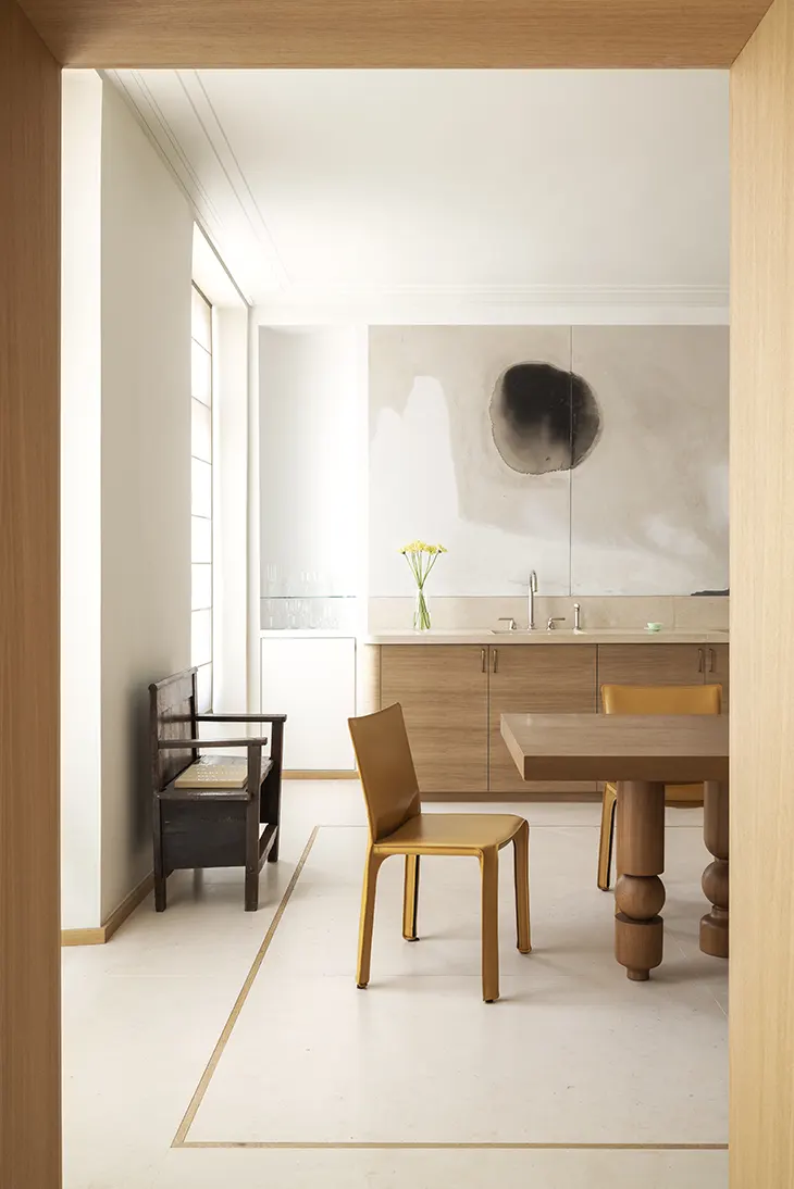 In the Marais district of Paris, AFTERBACH delivers Turenne, a 120-square-meter apartment conceived for gallery owner Thibaut Van Den Bergh of Kolkhoze. The project reflects a long-standing collaboration between Van Den Bergh and Francesco Balzano, founder of AFTERBACH, evolving from a professional relationship into a creative partnership grounded in trust. Together, they shape a space that frames collectible design within a disciplined architectural structure.