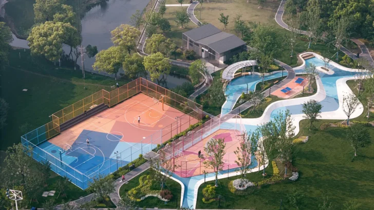 In Kunshan, Suzhou, (China), the Huachiao Vibrant Sports Park unfolds as a living stage where tradition and modernity intersect. Opened in March 2024, this 6,000-square-meter urban park lines Greenbelt Avenue, transforming the poetic grace of Kunqu opera’s flowing water sleeves into a dynamic, contemporary landscape. Here, the boundaries between cultural memory and urban vitality dissolve, inviting residents into a realm where movement, play, and heritage converge.