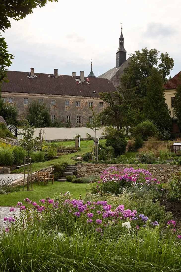 The garden is a geometric composition of terraces, restored according to a rediscovered 200-year-old terrain layout. The formality of the plan, rooted in Baroque order, is softened by wild, naturalistic planting. The result is a vivid tension between structure and spontaneity, between memory and renewal. Sustainability runs through every layer: recycled materials, rainwater management, and biodiversity enhancement redefine what a historic garden can mean in a contemporary town. Framed by a Baroque stone wall and lined with restored greenhouses, Kraffer Garden now serves as a public demonstration garden, hosting workshops, seasonal markets, and cultural events. It is a place to learn, rest, and engage, a civic landscape grown from design and care.