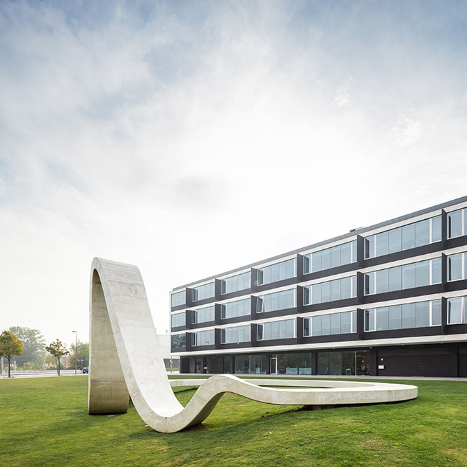 For the celebration of the 10th anniversary of the creation of the Science and Technology Park of the University of Porto, (UPTEC), FAHR was challenged to develop a structure for the garden in front of the central building that symbolized this mark in time and made it last in the future as a symbol of the park. Take a look at the complete story after the jump.