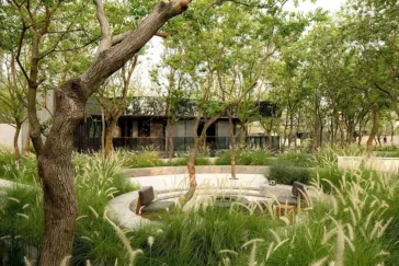 Atelier Échelle designs House on the Lake on the west banks of Lake Memphremagog as a contemporary reinterpretation of the rural Quebec barn. The project repeats the prototypical barn volume in four distinct articulations: an outdoor summer home, an indoor winter home, a living quarter, and a guest quarter. Cedar roofs, brick walls, and glass […] More