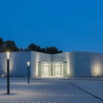 A transparent water mirror serves as a pivotal feature within the design, bringing natural light underground and linking exterior and interior spaces. The presence of carefully selected vegetation, chosen for its adaptability to wind and sunlight, ensures the creation of sustainable green spaces. These plants not only soften the building’s structure but also foster an environment that feels alive and connected to nature.