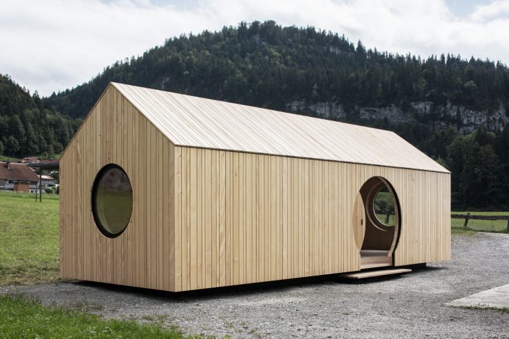 Innauer-Matt Architekten designed this minimalistic exhibition house situated in Bezau, Vorarlberg, Austria, for the timber construction company Kaspar Greber. Take a look at the complete story after the jump.
