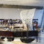 The interior space of the new extension building is characterised by raw surfaces, an exposed solid wood construction and simple details showcasing the craftsmanship of its builders. The few selected fixtures and the central staircase are made in black steel and take a back seat to the goods on offer. A solid spruce façade and solid fir on the inside walls, polished concrete floors with integrated heating and floorboards in ash wood provide a simple, yet striking space and refer to the building’s origins as a workshop.