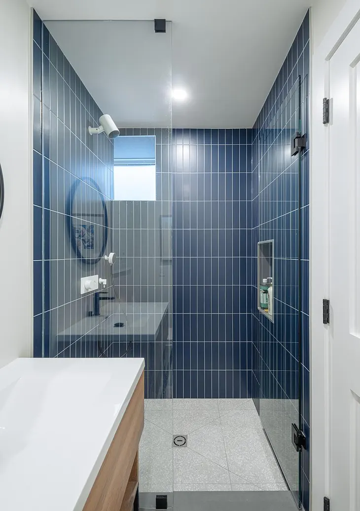 From the earliest stages of planning, the client’s extensive collection of modern and contemporary art guided the design approach. Picnic Design used the collection as a conceptual framework for the spatial organization of the ground floor, connecting different areas of the home through a series of visual zones. These transitions appear through shifts in color, material, and texture, creating a playful yet cohesive interior language that reflects the intersecting lines and geometries often found in modern art.