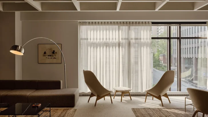Cain Lamarre’s new Montreal (Canada) offices, crafted by Sid Lee Architecture, reimagine the law office as a vibrant, people-centered environment within the city’s Golden Square Mile. Relocating to a heritage building, the firm reinforces its commitment to human-scale values, offering its team a workspace that balances tradition and innovation. The design draws from hospitality concepts, replacing formality with warmth and openness, while supporting the nuanced demands of legal practice, confidentiality, collaboration, and flexibility.