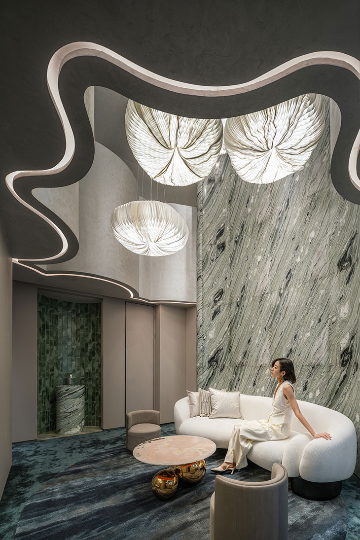 The meticulous design extends to the symmetrical layout and symbolic elements throughout the Orbit. The main hall is shaped like a Begonia Ruyi, with a central open space featuring a marble basin that mimics a miniature vortex, reinforcing the overarching theme.