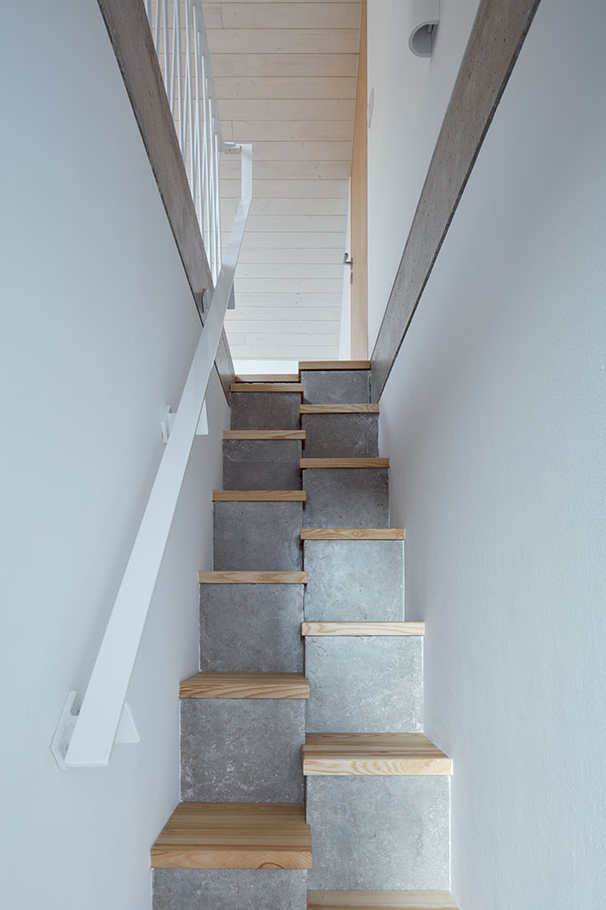 A gable facade with a bay window forms the face of the house. The bay window gently breaks through the facade and the surface gradually seems to soften. This is one of the main features of the house. We strove to maximize the view and to form a relationship between the house and the street. At the same time, we wanted to articulate the representative gable wall of a country house in a contemporary language. We refused to settle for small windows and wished to avoid exaggerated romanticism.