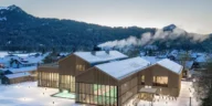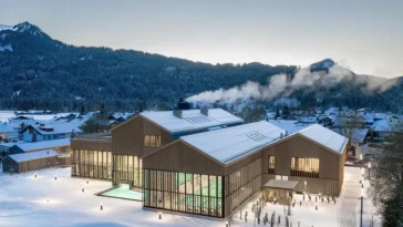 The architects emphasized authenticity and tactility in the selection of materials. Rough-sawn, untreated wood wraps the façade, weathering naturally as it ages. Inside, oiled wood creates warmth, complemented by local stone surfaces and accents of black metal. Together, these elements create continuity between exterior and interior, reinforcing the unity of the design while maintaining a clear material honesty.