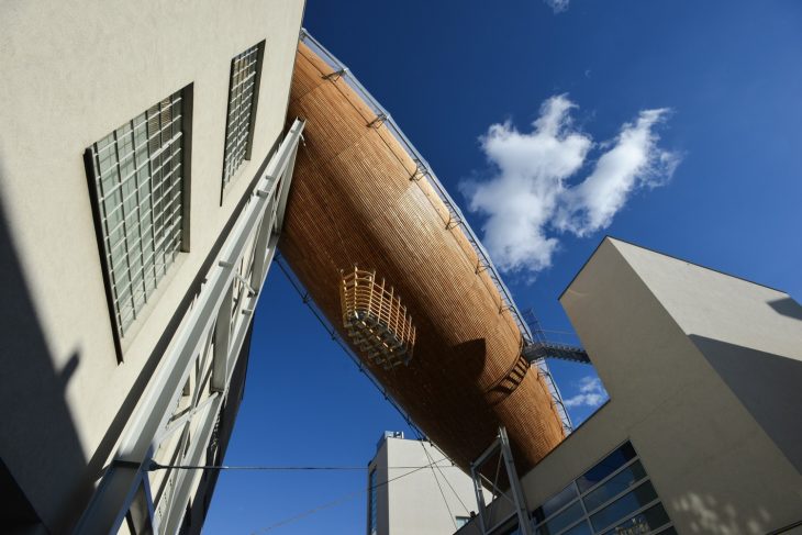 The construction of a giant wooden airship “suspended” above the DOX Centre is yet another testament to Leoš Válka’s personal conviction that is reflected in the DOX Centre’s overall philosophy: that even in today’s fast-paced, globalized world where nothing that cannot be calculated, evaluated, or predicted is worth risking for, “things can be done differently.”